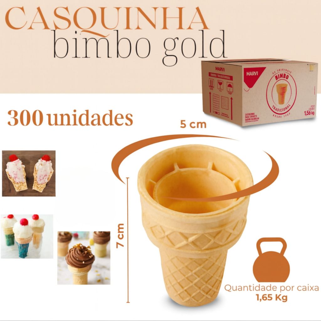 Casquinha Bimbo Golde Marvi 1,56kg - Casquinha De Sorvete Crocante - 300 Un