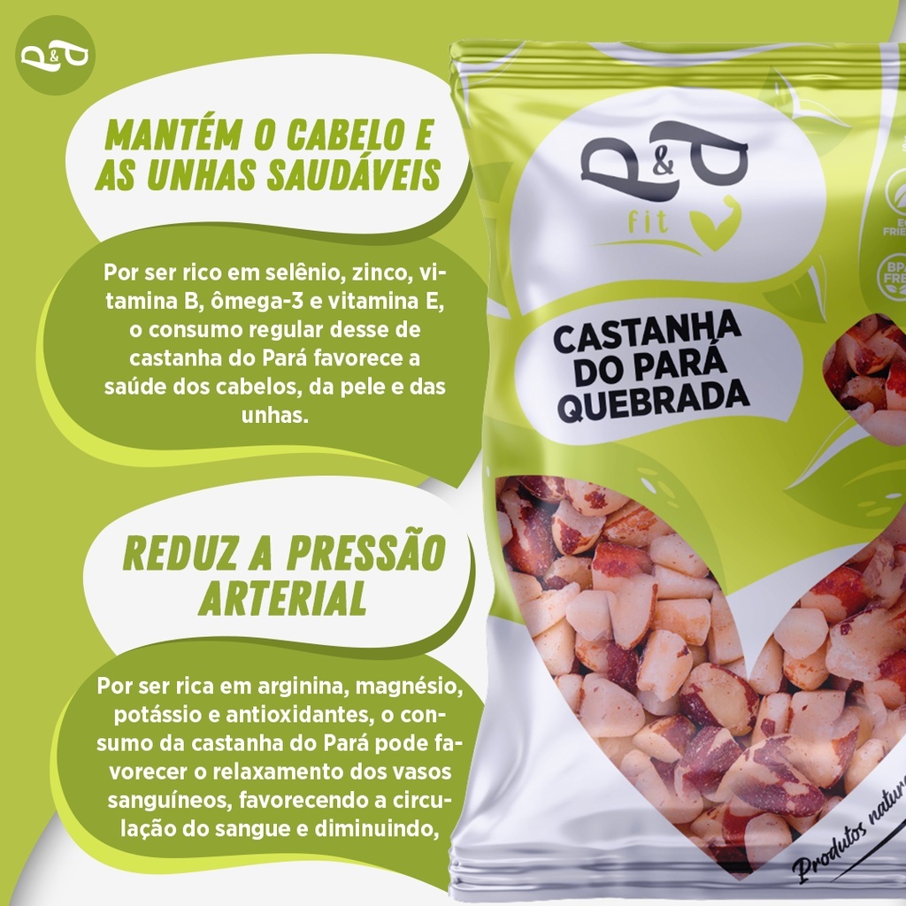Kit Composto por: 1x Castanha de Caju em Bandas sem sal 500g 1x Castanha do Pará Quebrada 500g Sobre a empresa: A P&P Linha Fit é uma empresa especializada em produtos naturais. Com uma estrutura de ponta para a manipulação de alimentos, fracionamos as sacas e vendemos em embalagens ideias para o nosso consumidor final. A política da Garantia de Satisfação faz com que nossos produtos passem por um rigoroso controle de qualidade levando o melhor produto a mesa do nosso cliente com um preço justo. Obrigado por comprarem nossos produtos!