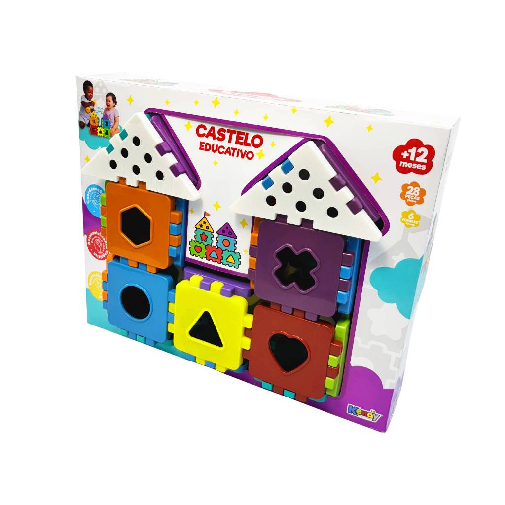 Castelo Educativo Baby 28 Peças + 6 Formas | Brinquedo de Montar e Encaixe | +12 Meses | Kendy | QUEEN SHOP