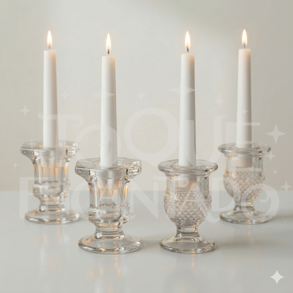 Castiçal de Vidro Porta Vela Pequeno Suporte para Vela Palito - Kit 2/4/6