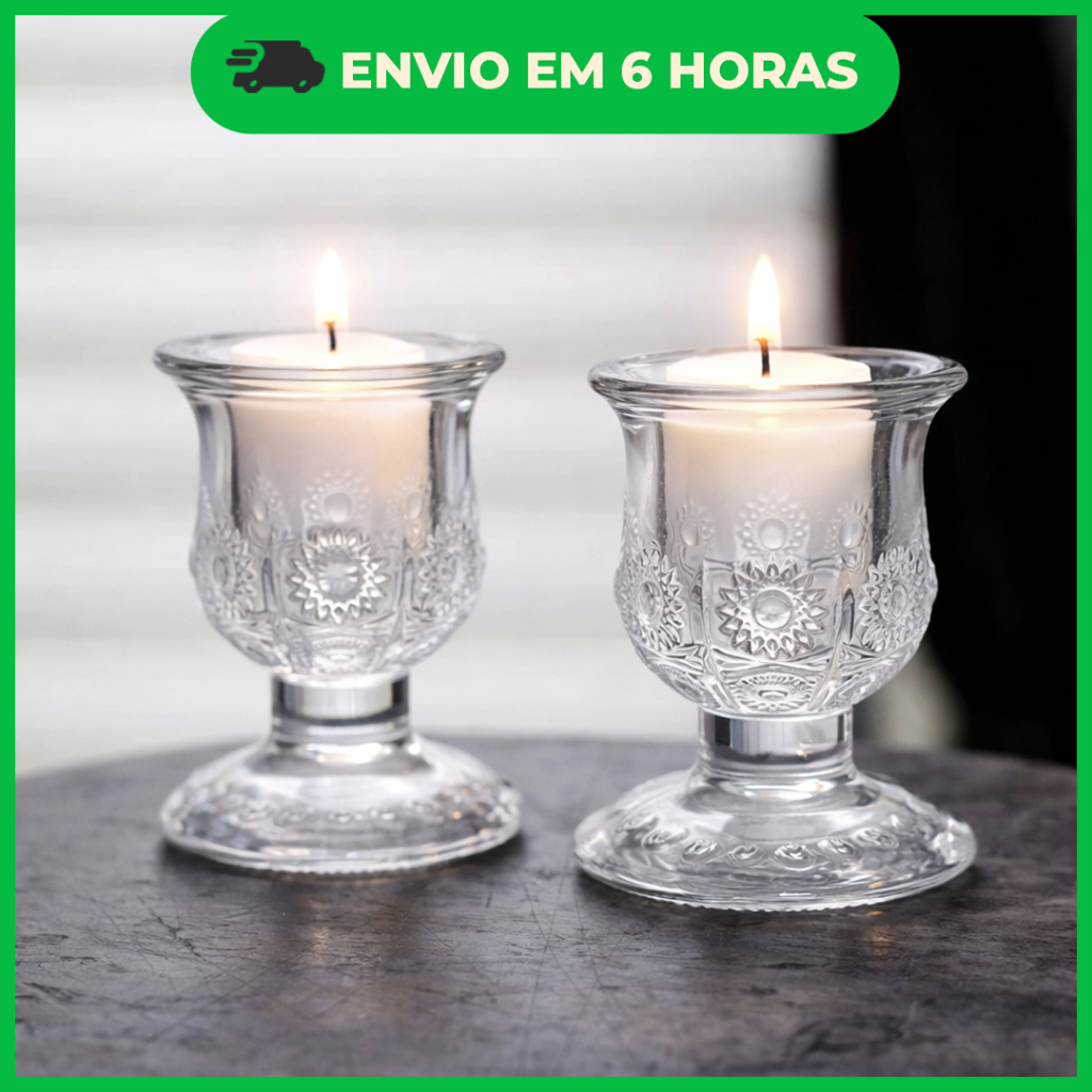 | Castiçal em Vidro - Porta Velas 6cm este produto | R$ 17,97 | 36% | 4.9/5 | 125 |