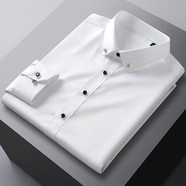Casual Não Ferro Manga Longa Diamante Botões Seda Escritório De Negócios Trabalhando Social Simples Camisa Masculina