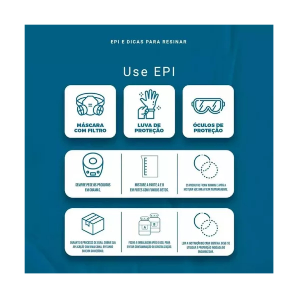 Catalisador 100ml Em termos simples, um catalisador para resina é um agente que acelera o processo de cura. Assim, ditando o ritmo no qual a resina se transforma de líquido para sólido. Sua importância é notável, especialmente para aqueles que trabalham com artesanato, modelagem ou revestimentos. Além de acelerar a cura, o uso inteligente do catalisador oferece benefícios tangíveis. Desde o aumento da durabilidade e resistência dos produtos finais até a economia de tempo durante o trabalho com resinas, os catalisadores desempenham um papel crucial na eficiência e qualidade do resultado final. Preparação do produto: - Diluir de 35 a 40 gotas de Catalisador para cada 100g de Resina, - tempo de trabalho que é de aproximadamente 12 minutos após a adição do catalisador. - Aproximadamente 12 minutos de trabalho após a mistura do catalisador à resina; - Espessura aproximada de 1mm por camada de laminado (Manta 450 + Resina); - Resíduos de Resina podem ser facilmente removidos com Thinner Para Limpeza - Endurecimento da Resina/Laminado em poucas horas e cura total em 24h (para expor a peça a agentes agressores como lixamento, tração etc.); - Proporção do Catalisador Butanox de 1% em massa/peso (aproximadamente 15 á 20 gotas para cada 100ml).