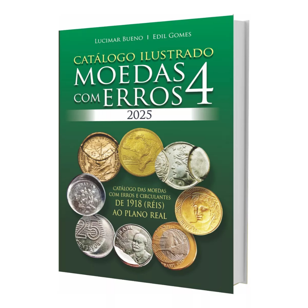 O Catálogo Ilustrado - Moedas com Erros 4, vem com muitas novidades. Além das atualizações tanto de valores quanto de novos erros, o catálogo traz de forma retroativa moedas de 1918 (Réis) a 2024 (Real) e também valores das moedas sem erros em MBC, Soberba e FC, portanto não é apenas uma alteração de valores, tem muita novidade, dicas e páginas adicionais. Uma obra essencial para quem coleciona, comercializa e manuseia moedas no dia a dia. Conta com mais de 220 páginas em papel couchê, todo ilustrado e colorido. Uma ferramenta importante para qualquer nível de colecionador e mesmo para aqueles que manuseiam diariamente moedas. Ainda mostra como precificar as moedas do relógio de reversos, como identificar moedas com erros e adulteradas, guia de empresas, sites e canais de rede social sobre numismática onde poderá tirar dúvidas e até vender suas moedas. É um investimento para quem coleciona ou quer vender moedas com erros. Dimensões 15 x 21 x 2 cm