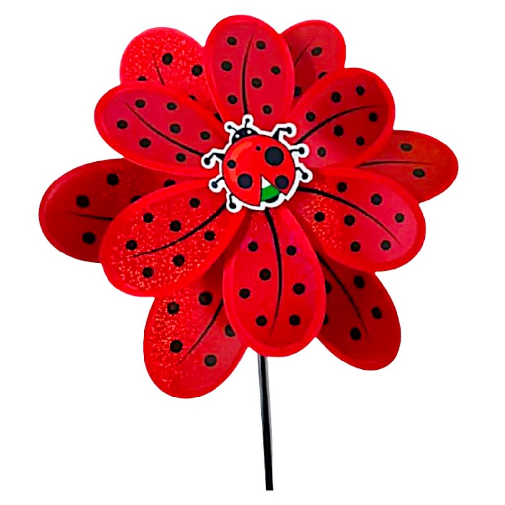 Catavento Joaninha Grande 75 cm Jardim 2 Camada Decoração
