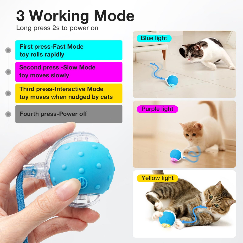 Com despertar inteligente Ele funcionará quando você tocá-lo e entrará automaticamente no modo de espera se você não tocá-lo por 5 minutos É um brinquedo interativo do jogo de rolagem do gato projetado especificamente para gatos do animal de estimação. Está equipado com um dispositivo de condução eficiente que permite que a bola role automaticamente, atraindo gatos para perseguir e capturar, satisfazendo sua natureza de caça. A superfície da bola de brinquedo é feita de materiais macios, seguros, não tóxicos e amigáveis para gatos. Ao mesmo tempo, o design interativo pode aumentar a comunicação emocional entre animais de estimação, permitindo que os gatos se exercitem, consumam o excesso de energia e mantenham a vitalidade e a saúde nos jogos. A bola de brinquedo também tem uma função de chá, que pode ser controlada manualmente ou ajustada para o modo automático, trazendo diversão para os gatos. Tamanho Peso do produto 57g Conversão: 1 polegada = 2,54 centímetros, 1 centímetro = 0,393 polegadas assuntos que necessitam de atenção: 1. Por favor, permita uma diferença de 1-3c Cor do produto enviada aleatoriamente