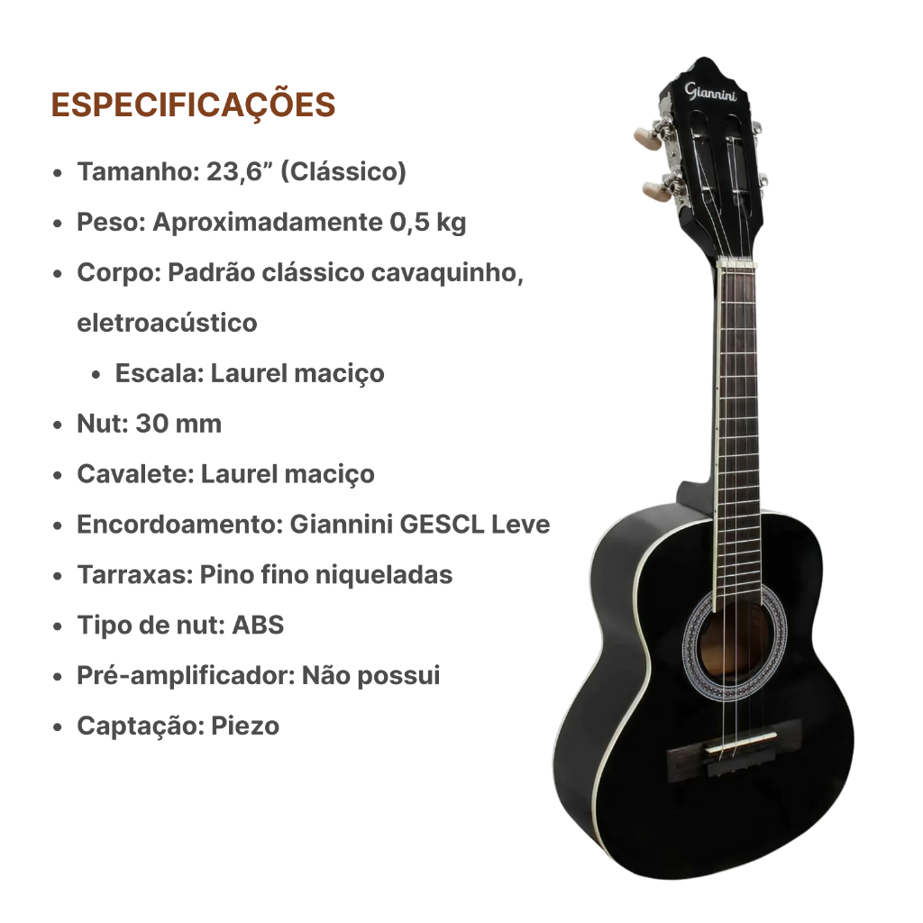 Cavaco Eletroacustico Giannini Start Cs14 Preto Kit Completo