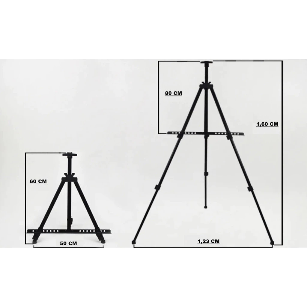Cavalete Tripé de Pintura Profissional 1,60m Dobrável com Bolsa – Para Tela Grande, Aço Resistente 3kg CarnavalShop