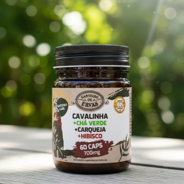Cavalinha + Chá Verde + Carqueja + Hibisco 60 caps 1400 mg Canteiro de Ervas