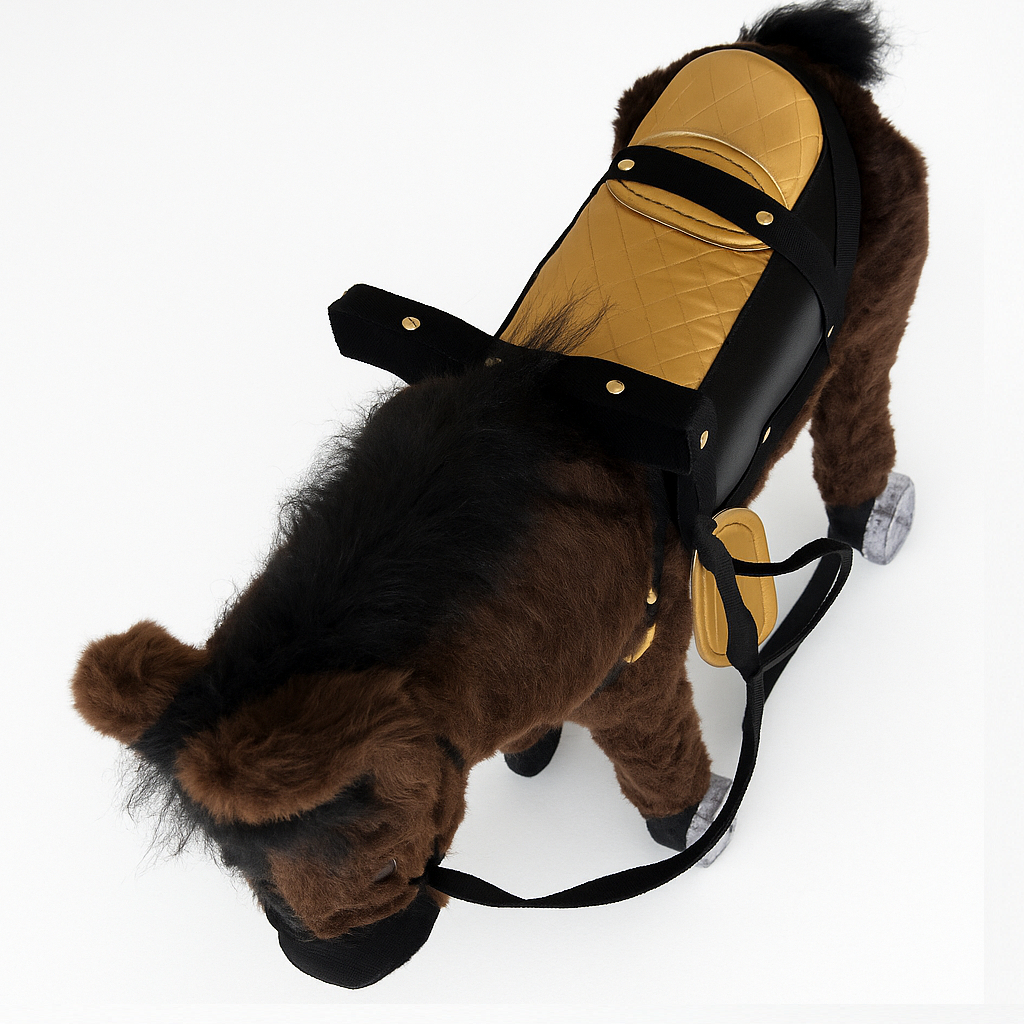 Fabricado em madeira reflorestada e revestido com pelúcia, o nosso cavalinho possui detalhes encantadores: acessórios no peitoral, rédeas, suporte de mãos na sela Todos os tecidos utilizados são antialérgicos, garantindo mais segurança e tranquilidade para os pais e muito mais conforto para as crianças! Ele também contribui para o desenvolvimento e o equilíbrio do seu filho. Todos nós queremos crianças saudáveis e fortes e nada melhor do que alcançar isso com muita diversão! Produto certificado pelo Inmetro e com Garantia!!! 97,6% dos nossos clientes satisfeitos, nossos produtos são originais, tem garantia certificado e procedência e o envio mais rápido e barato!!! O melhor investimento para o desenvolvimento e diversão do seus filhos. Nosso produto é exclusivo e apenas algumas unidades estão disponíveis. Caso não fique satisfeito com o produto, oferecemos uma garantia de 60 dias para devolução e ressarcimento do valor pago Este produto tem todas as características que você deseja. Caso tenha algum problema para usar o produto é só entrar em contato conosco que um consultor irá te atender prontamente. Comece a criar memórias inesquecíveis nos seus filhos, dê presentes que eles realmente gostam! Venha conhecer Nossa Linha de Brinquedos! Tamanho e dimensões do cavalinho: 59 cm de altura Aprox. 59 cm de comprimento Para crianças de 1 a 5 anos Cavalinho de Rodinha Os acessórios podem variar as cores por ser um produto artesanal Pelúcia Anti alérgica. ATENÇÃO : O estribo (onde se coloca o pé) e somente para deixar o brinquedo realista, ele não suporta o peso da criança para subir no cavalo, tornando uma decoração do cavalo OBS: E NECESSARIO ACOMPANHAMENTO DOS PAIS OU RESPOSANVEL