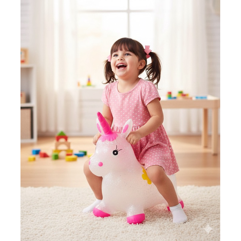 Cavalinho Upa Upa Unicórnio Com Som E Led Inflável Glitter Pula Pula Com Música Cores