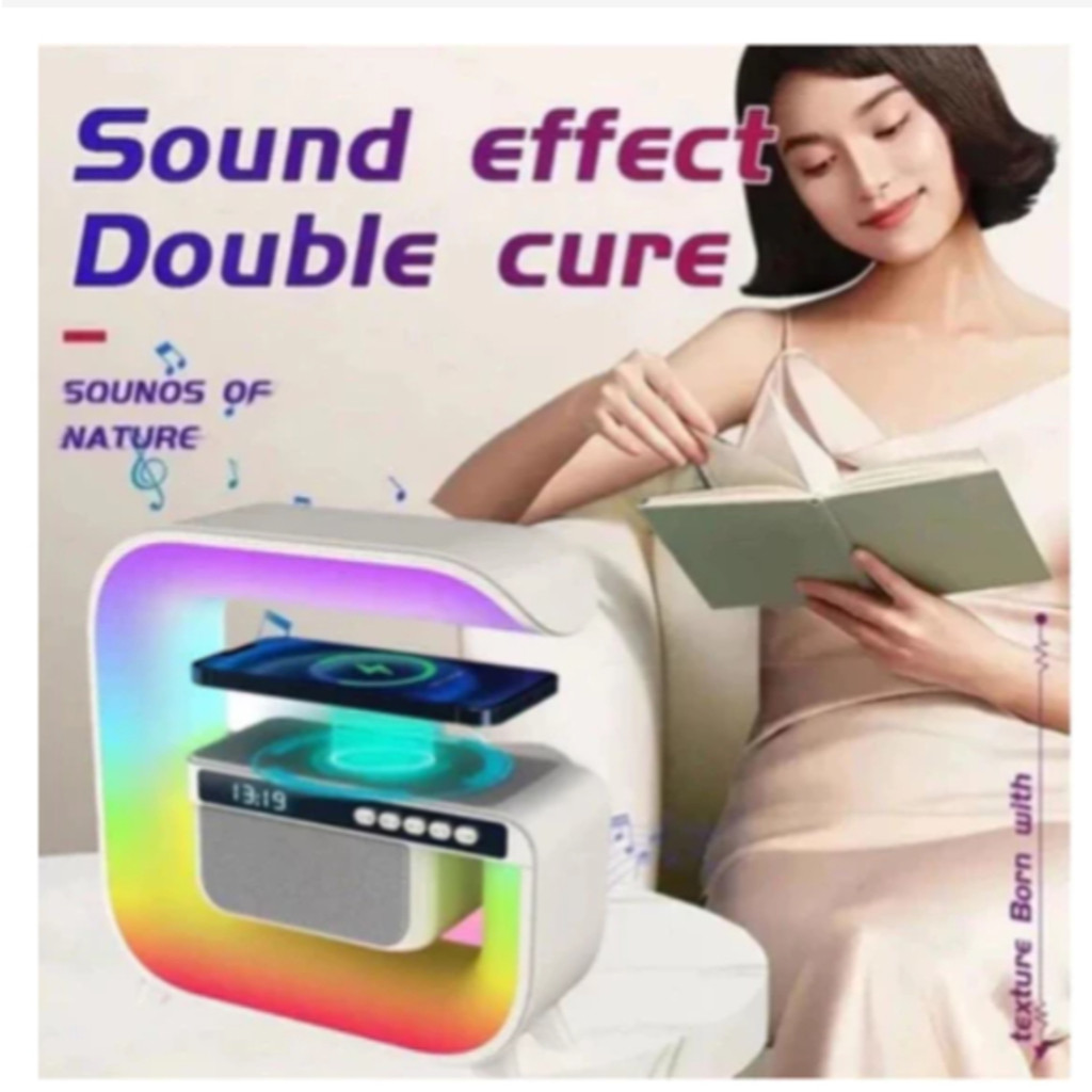 Caxinha de Som G -Speaker COR BRANCA Com Relógio Luminária Bluetooth Inteligente Carregador Sem Fio Led Luz Rgb COM RELÓ