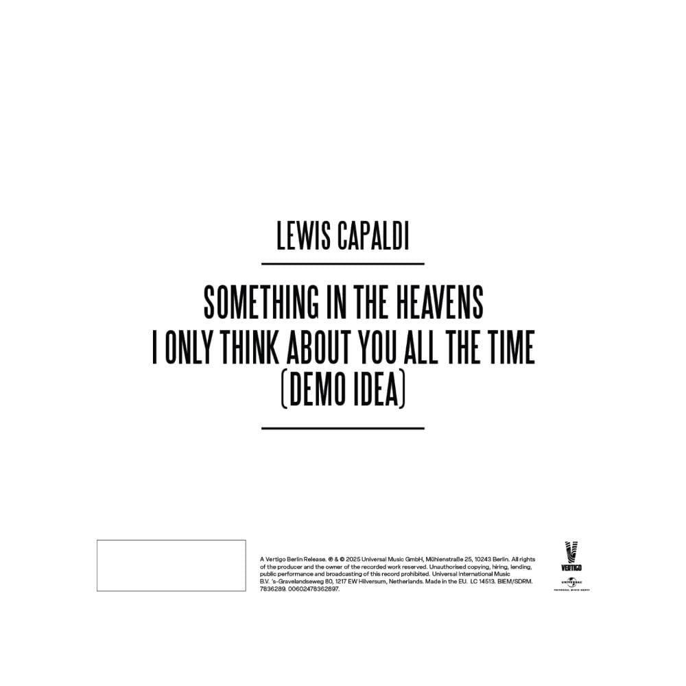 CD Lewis Capaldi - Something In The Heavens (Lyrics) - Importado • CD de 5" em wallet - acabamento fosco. Lewis Capaldi revela o simplesmente comovente novo single 'Something In The Heavens'. Tracklist: 1. Something In The Heavens 2. I Only Think About You All The Time (Demo Idea)