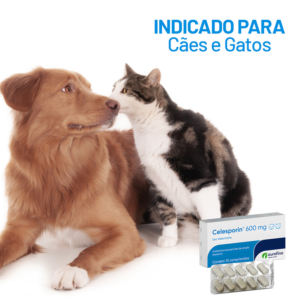 Somos revendedores Autorizados do Laboratório. Produto Original, Lacrado, Com nota fiscal e validade longa. Antibiótico Ourofino Celesporin 600mg de 10 Comprimidos - Cartela Avulsa. INDICAÇÃO - Indicado para cães e gatos; - Tratamento de infecções de pele de origem traumática ou cirúrgica; - Pode ser administrado juntamente com o alimento. Detalhes O Antibiótico Ouro Fino Celesporin de 10 Comprimidos - 600 mg é indicado para o tratamento de diversas enfermidades que acometem cães e gatos, causadas por agentes etiológicos sensíveis à cefalexina. * Consulte sempre o médico Veterinário de sua confiança para o uso apropriado deste medicamento. Leia a bula ou informações descritas na embalagem. ADM: Administrar por via oral, na dosagem de 1 comprimido para cada 20 kg de peso corporal; ou seja, 30 mg de cefalexina por kg de peso corporal, de 12 em 12 horas ou a critério do médico veterinário. A dosagem, bem como a duração e o intervalo de tratamento, poderão ser ajustados de acordo com o tipo e a gravidade da infecção, sob orientação do médico veterinário. Em infecções mais brandas. Recomenda-se o tratamento por 07 dias. Nos quadros mais severos podem ser necessários até 30 dias de tratamento, ou a critério do médico veterinário. Recomendamos a continuidade do tratamento por até 48 horas após o desaparecimento do quadro clínico.