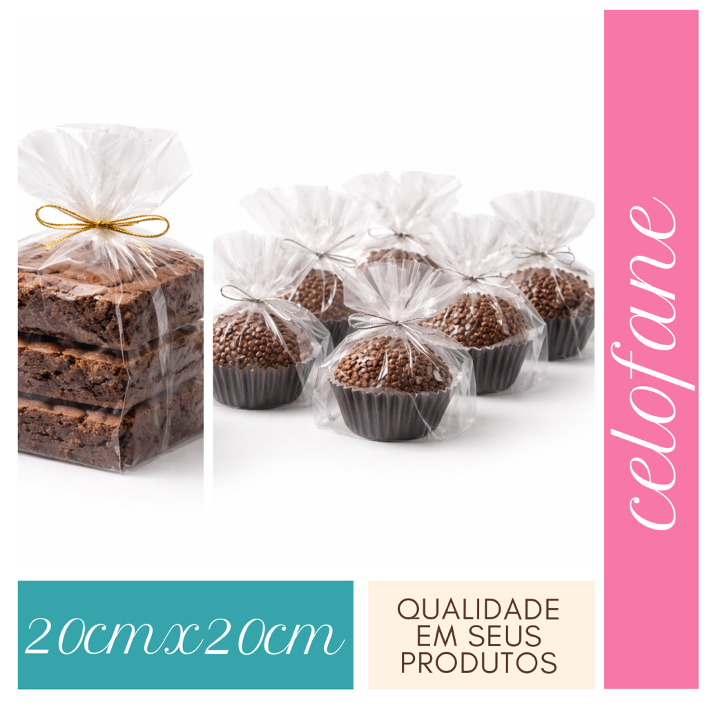 Celofane 20x20 Bopp Transparente kit c/ 1500 Unid. Doces e Brownies