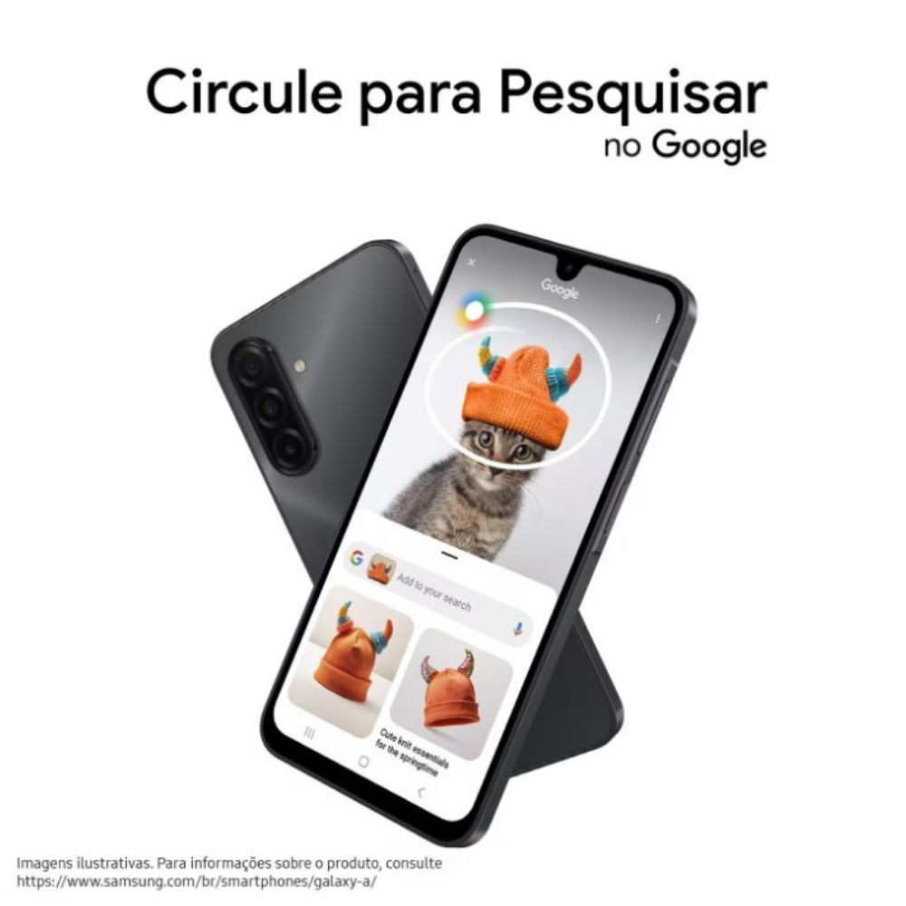 Samsung Galaxy A17 O primeiro Galaxy A com Inteligência Artificial! O Samsung Galaxy A17 4G chega com design fino e acabamento moderno, oferecendo desempenho e recursos de ponta para o dia a dia. É o primeiro Galaxy A com Inteligência Artificial, trazendo as experiências do Gemini Live e o recurso Circule para Pesquisar que tornam a interação mais fluida e inteligente. Tela 6.7 Polegadas Equipado com tela Super AMOLED de 6.7 Polegadas e resolução FHD+, o Galaxy A17 proporciona cores vibrantes e excelente brilho mesmo sob luz intensa. Câmeras A câmera traseira tripla de até 50MP com estabilização óptica (OIS) garante fotos e vídeos com nitidez impressionante, enquanto a câmera frontal de 13MP perfeita para selfies detalhadas. Processador Com processador MediaTek Helio G99 Octa-Core e 4GB de RAM, o desempenho é fluido, permitindo navegar, jogar e multitarefa sem travamentos. Armazenamento O armazenamento interno de 128GB é expansível até 2TB via cartão MicroSD, oferecendo espaço de sobra para fotos, vídeos e aplicativos. Resistência e Bateria Além da performance, o Galaxy A17 entrega durabilidade com resistência à água e poeira (IP54). A bateria de 5000mAh mantém o ritmo por muito mais tempo, com carregamento rápido e eficiente. Conectividade Com Samsung Wallet para pagamentos seguros, leitor biométrico, suporte a Bluetooth, Wi-Fi, NFC e GPS, o Galaxy A17 é completo em todos os detalhes unindo estilo, inteligência e performance na palma da mão. Android 15Sistema Operacional Android 15.0, One UI 7.0 com até 6 versões de atualizações e 6 anos de segurança. Descubra mais produtos e inovações Samsung e aproveite todas as novidades agora mesmo! Características Gerais: Código de Referência: SM-A175FZKFZTO Tipo: Barra Grava vídeo: Sim Slot para cartão: Sim Cartão incluso: Não Rádio FM: Não MP3 player: Sim Bluetooth: Sim Wi-Fi: Sim Visualizador de arquivos: Sim Browser de internet: HTML Mensagens: E-mail, MMS, EMS e SMS Formato de áudio: MP3 Formato de vídeo: MP4 Tela: 6.7 polegadas Super AMOLED FHD+ (1080 x 2340) Processador: MediaTek Helio G99 (6nm) Octa-Core até 2.2GHz Sistema Operacional: Android 15.0 (One UI 7.0) Armazenamento Interno: 128GB (expansível até 2TB) Memória RAM: 4GB Conectividade: 4G, Wi-Fi, Bluetooth, NFC, GPS Dual Chip Nano SIM (4FF) Sensores: Acelerômetro, impressão digital, geomagnético, luz, proximidade virtual Resistência: IP54 (água e poeira) Quadriband GSM: Sim Resolução do visor/display (pixels): 1080 x 2340 pixels Tipo do Chip: Nano SIM Bateria removível: Não Bateria (mAh): 5000 mAh Câmera: Câmera Traseira Tripla, Câmera Frontal Resolução câmera frontal: 13 MP Resolução câmera traseira tripla: 50 MP (Principal) + 5 MP (Ultra Wide) + 2 MP (Macro) Número Homologação Anatel: 03087-25-00953 Conteúdo da Embalagem: 01 Smartphone Samsung Galaxy A17 4G 01 Carregador- 01 Cabo USB 01 Extrator de Chip 01 Manual do Usuário e Garantia Dimensões: 164,4 x 77,9 x 7,5 mm Garantia do Fabricante: 12 Meses Entrega do Produto: Todas as instruções, manuais e peças necessárias para a montagem são fornecidas junto com o produto