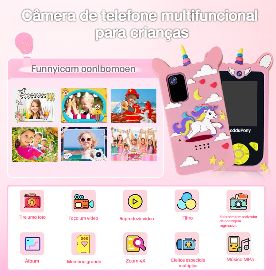 Celular Infantil com Câmera 4x Zoom,Música, Vídeo e Jogos Educativos, Presente Ideal para Crianças
