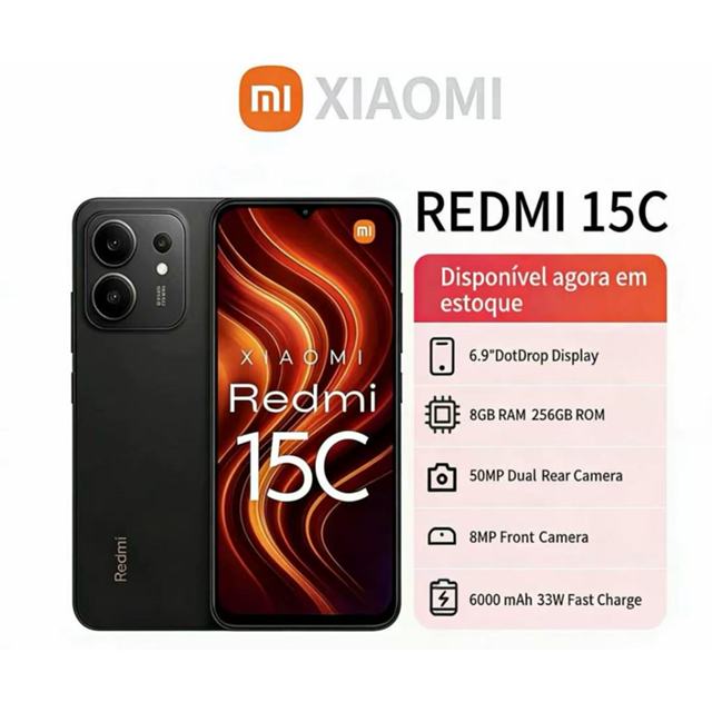 | Celular Redmi 15C 4G, 256GB 8GB,Câmera 50MP, Bateria 6000mAh, Prote... este produto | R$ 959,00 | 4% | 4.7/5 | 826 |