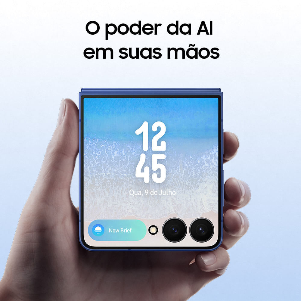 Celular Samsung Galaxy Z Flip7 com tela dobrável de 6.9" AMOLED Dinâmico 2x (Interno) e 4.1" AMOLED (Externo), 256GB, 12GB de RAM, Câmera Dupla Traseira de 50MP (Dual Pixel, OIS) + 12MP (Ultra Wide), Galaxy AI, Bateria de 4300mAh, Android 16 Samsung apresenta o novo Galaxy Z Flip7, o novo smartphone dobrável com novo design icônico, refinado. O Galaxy Z Flip mais fino de todos os tempos, para uma pegada mais confortável e melhor portabilidade. O Galaxy Z Flip conta com uma Tela Flex de 4,1”, tela maior, com moldura fina que combina recursos inteligentes, incluindo a Inteligência Artificial, além de muito estilo. A sua Câmera Dupla de até 50MP, permite que você tire lindas selfies mantendo cores e texturas naturais em diferentes ângulos utilizando a FlexCam. Você também pode criar seus próprios filtros direto da sua galeria. O Galaxy Z Flip7 garante diversas possibilidades para que as suas fotos fiquem de outro nível, junto com mecanismos do Galaxy IA, auto zoom e temporizador virtual. O Zoom Rocker permite que você controle o zoom com uma mão e o ProVisual Engine de última geração captura seus momentos com nitidez impressionante, realçando detalhes mais finos para fotos e vídeos mais nítidos. O Galaxy Z Flip7 te acompanha em todos os momentos com sua bateria de longa duração. A nova bateria de 4.300 mAh oferece a você o poder de fazer o que ama. É a maior bateria já vista em um Z Flip e suporta carregamento super-rápido de até 25W. O Gemini e Gemini Live, ferramentas de AI do Google, estão presentes no seu Galaxy Z Flip7. Com a ação integrada entra aplicativos, você pode fazer múltiplas tarefas sem trocar de aplicativos. O Gemini Live conta com os recursos: - Gemini Live com câmera: aponte sua câmera para qualquer coisa e converse naturalmente para ter respostas instantâneas sobre o que está sendo capturado. - Gemini Live com compartilhamento de tela: compartilhe o que você tem na tela e tenha ajuda imediatamente. O Glaxy Z Flip7 agora traz o Now Bar e Now Brief diretamente na Tela Flex para você verificar e controlar facilmente as informações em tempo real do aplicativo que você está usando e para manter-se informado com briefings adaptados às suas rotinas e interesses personalizados. Agora com a nova One UI 8.0, permite você receba sugestões em tempo real com base no conteúdo na tela. Interface atualizada da tela de bloqueio, inicial e aplicativos. Experiência de uso otimizada para criação, anotação e multitarefa para aumentar a produtividade. Tenha uma Experiência Galaxy mais segura e atualizada com o seu aparelho. O Galaxy Z Flip7 assegura até 7 atualizações de sistema operacional Android e até 7 anos de atualizações de Segurança. Fora isso, a sua proteção é aprimorada com Samsung Knox, garantindo que dados confidenciais e sigilosos permaneçam seguros, e com Cadeado Galaxy, protegendo os seus dados e acessos a aplicativos por terceiros.