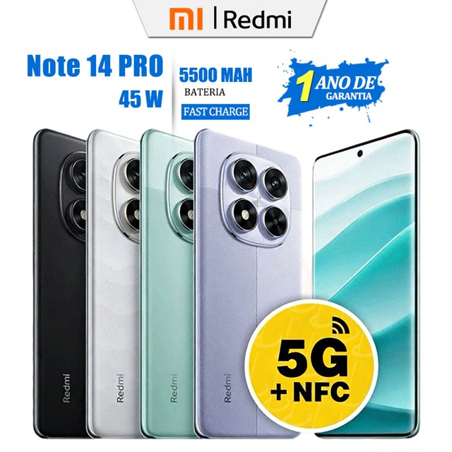 Celular Xiaomi Redmi Note 14 Pro 5G NFC 8GB RAM/256GB Câmera 50MP Versão Global 5500MAH Original