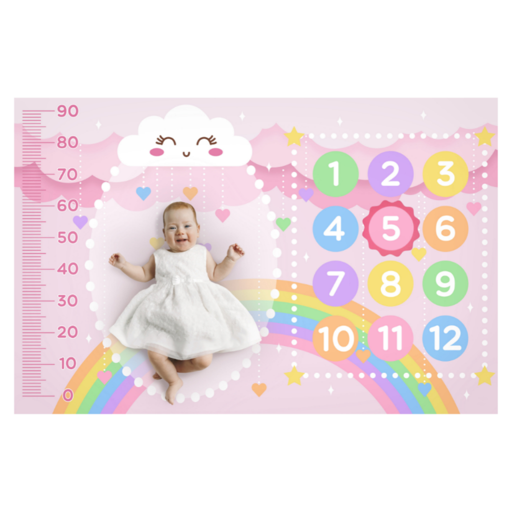 Cenario Mesversario Para Fotos Lençol Berço Decorativo C/ Moldura Fotos do Bebe Unissex 100% Algodao