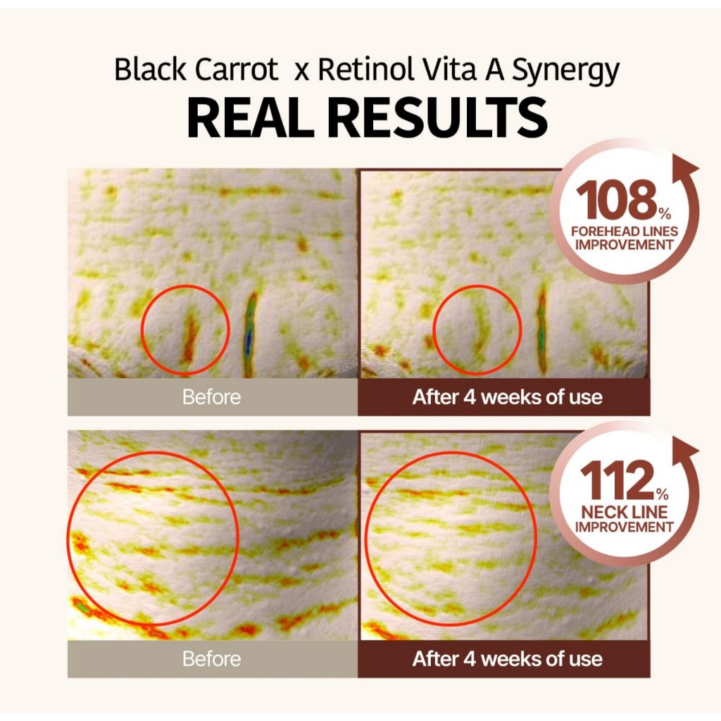 BOM BOM Preto Cenoura para os olhos Vita-A Cenoura para os olhos de Retinol, 30mL Formulado com Jeju Preto Extrato de Cenoura, rico em Pro-Vitamina a, este creme para os olhos de retinol ajuda visivelmente a suavizar linhas finas e rugas de expressão ao redor dos olhos para um visual mais firme e jovem. [Textura em Creme Rico e Hidratante] a fórmula suave densa, mas sedosa, desliza sem esforço para a pele, proporcionando hidratação profunda, garantindo um acabamento confortável e não oleoso. Sensação suave e flexível Absorve perfeitamente em linhas finas para uma sensação macia e flexível. Cuidados com o clareamento do círculo escuro] Glutationa e Niacinamida trabalham juntos para reduzir a aparência das olheiras e iluminar a área sub-olho. [Fórmula Vegana e Ética Certificada] Feito sem ingredientes derivados de animais e certificado oficialmente pela Associação Vegana da Bélgica, este creme para os olhos alinha com escolhas de beleza conscientes para uma rotina de cuidados com a pele sem preocupações. O Retinol requer um período de adaptação da pele [Guia de uso suave para iniciantes de Retinol] O Retinol requer um período de adaptação da pele - use apenas duas vezes por semana durante as primeiras 2 semanas. Se não ocorrer irritação, caso não ocorra irritação, o uso diário é possível após 3 semanas. Sempre aplique protetor solar durante o dia ao usar retinol para evitar a sensibilidade solar.