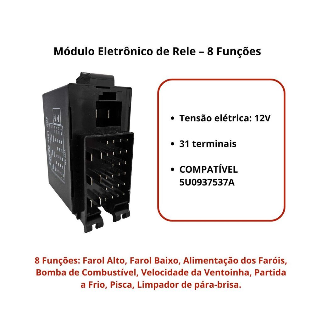Central Modulo Rele 31 Terminais Para Volkswagen Voyage G5 G6 Após 2008 5U0937537A