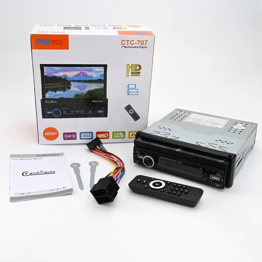 Central Multimídia 1 DIN 7” Retrátil Bluetooth GPS USB Câmera de Ré MP5 CarPlay jorge