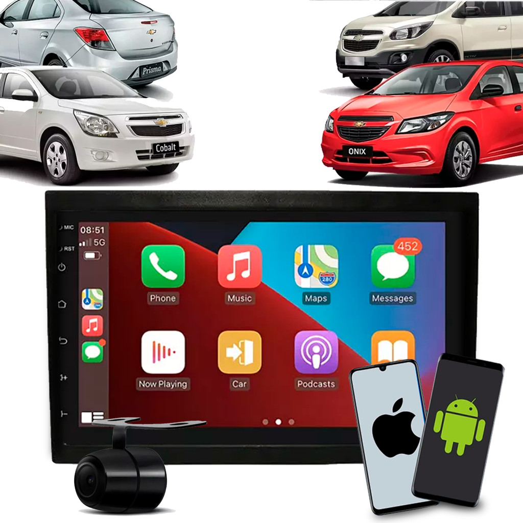 Central Multimídia 7" Polegadas Onix Prisma Cobalt Spin CarPlay/Android Auto + Moldura + Câmera de Ré