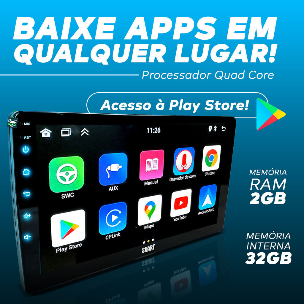 Central Multimídia 9 Polegadas Android 13 2Gb CarPlay Android Auto Sem Fio Wifi GPS S900 Svart A FACILIDADE DE TER CAR PLAY E ANDROID AUTO SEM FIO EM UMA MULTIMÍDIA COM TELA CAPACITIVA DE ÚLTIMA GERAÇÃO Uma Central Multimídia reconhecida pela extrema qualidade e por todas as funcionalidades que fazem a diferença na hora de você adquirir um aparelho para seu carro - Sistema Android 13 nativo (Acesso a Play Store) - Uma tela diferenciada com cores vibrantes e imagens nítidas em um display de vidro IPS-LCD Full Touch de 9 polegadas, protegido pela durabilidade do Gorilla Glass! • TOUCH SCREEN 9" CAPACITIVA DE ÚLTIMA GERAÇÃO (PROTEÇÃO GORILLA GLASS) • ANDROID 13 NATIVO (ACESSO A APLICATIVOS DIVERSOS E PLAY STORE) • 2GB DE RAM • CARPLAY E ANDROID AUTO POR WIFI (ou cabo) • COMPATÍVEL COM CÂMERAS HD • GPS INTEGRADO • BLUETOOTH • WIFI EXPLORAÇÃO ILIMITADA Google Play Store e GPS integrado. CONECTIVIDADE SEM FIO WiFi e função RDS para transmissão de dados digital. CAR PLAY/ANDROID AUTO Sem fio ou via cabo BLUETOOTH Para músicas e chamadas, com microfone embutido. POTÊNCIA DE 4X25 RMS Equalizador gráfico digital e 8 modos pré-definidos. ESPELHAMENTO Exibe a tela da multimídia em dispositivos externos. COMANDO SWC Com comando de volante para sistemas resistivos. ESPECIFICAÇÕES TÉCNICAS: - Resolução HD: 1280x720 - Display: IPS-LCD FULL TOUCH (CAPACITIVA) HD - Proteção de Tela Gorilla Glass . - Bluetooth: Música e Ligação (microfone interno). - Espelhamento: Exibe a tela da multimidia em uma tela externa ligada na saída de vídeo RCA - Configuração: Especial pra molduras 7 polegadas. - Conector: ISO, com fusível de proteção. - Potência: 4x25W RMS – 50W PMPO - Sintonizador: FM1, FM2, FM3 com até 54 posições de salvamento de estação. - Volume: 0~40 - Ratio: 60dB - Equalizador: Usuário, Padrão, Rock, POP, Ao vivo, Eletrônica, Clássica, Suave, Jazz. - Áudio: Equalizador gráfico digital, LOUND, Aumento de GRAVE. - Fader Digital com localização precisa do foco de som. - IR Controle Remoto: não tem. - Compatibilidade de áudio: MP3 / MP2 / WAV / WMA / AAC / AMR / FLAC/ M4A/ OGG / RA /APE - Compatibilidade de vídeo: 3G2 / ASF / AVI / DivX / mkv / MOV / Mp4 / MPG / TS / WMV / VOB / MTS / WEBM / M4VRMVB / FLV / H.264 - SCW (Comando de volante): Sistema resistivo. (Pode haver necessidade de utilizar um resistor de 1K (Ohms) em paralelo). Resistor não incluso, consulte seu instalador para efetuar a configuração. - Apps: Google Play. - GPS integrado - Sistema Operacional: Android SV13.1 - Processador: Quad-CORE (Tablet) - Memória: RAM 2GB / ROM 32GB - Função Wifi - Função RDS: sistema de transmissão de dados digital. - Função CAR PLAY / Android Auto: Wireless ou via cabo. - Microfone: externo ENTRADA TRASEIRA: - Ré (RCA) - CVBS IN (RCA) - MIC IN (P2) - GPS (Coaxial) - Áudio R+L (RCA) **Não possui entrada frontal para cartão de memória SAÍDA TRASEIRA - RCA: 2 ÁUDIO / 1 VÍDEO / 1 SUB - SWC (Comando de volante): Sistema resistivo. ** Pode haver necessidade de utilizar um resistor de 1K (Ohms) em paralelo. Resistor NÃO INCLUSO. CONTEÚDO DA EMBALAGEM: • 01. Central Multimídia Android 9" SV900 Svart • 01. chicote ISO • 01. chicote de cabos RC IN/OUT • 02. USBs (Recarga e dados) • 01. chicote com antena • 01. antena GPS • 02. suportes 2 DIN. Recomendamos que a instalação seja feita por um profissional, não nos responsabilizamos pelo mal uso do produto.