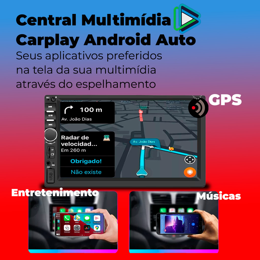 Kit Central Multimídia Carplay com Bluetooth Espelhamento de Celular + Moldura HB20 HB20S HB20X 12 a 18 Compatível com: HB20, HB20S e HB20X de 2012 À 2018 # Auto Equip # Seja bem-vindo(a)!!! --- Descrição: Central Multimídia 7" Polegadas Car Play/Android Auto - JR8 Transmite os principais recursos do seu celular para o painel do carro, desde navegação em tempo real a players de música. O espelhamento do seu smartphone na tela do seu veículo ainda mais perfeito. DISPLAY / TELA- Tela 7" Capacitiva - 1024X600 Pixels | Tenha à disposição uma interface mais intuitiva e adaptada para o dia a dia no volante, com ícones maiores, textos mais legíveis e informações pertinentes, para não se distrair. INTEGRAÇÃO SMARTPHONE- Um novo conceito de integração com celulares, conta com a tecnologia CarPlay e Android Auto, o que há de mais atual e desejado no mercado automotivo. A integração ocorre de forma muito fácil e o acesso ao conteúdo e aplicativos ocorre com a máxima segurança pois a tecnologia é capaz de identificar dentre seus aplicativos quais atendem requisitos de segurança necessário e os apresenta na tela de forma totalmente personalizada. Aplicações de Audio, Streaming, Agenda, Navegação, PodCasts, etc estarão sempre a um toque de distância. CONTROLE REMOTO- Conexão SWC: a multimídia possui a função de comando de volante que permite reconhecer as funções de áudio do volante do veículo. Devido às características funcionais do veículo, pode ser necessário o uso da interface de controle do volante (não inclusa). Observação: A central não possui Controle Remoto Infravermelho Especificações Técnicas: - Resolução: 1024 x 600;- Processador: Sunplus 8286h;- Entradas RCA: 1 Áudio + 1 Vídeo + 1 Câmera de ré + 1 Câmera frontal;- Saídas RCA: 1 Vídeo + 2 Áudio + 1 Subwoofer;- Radio: Am/Fm com RDS + 18 memórias;- Bluetooth: Músicas e Chamadas Telefônicas;- Potencia saída áudio: 4x45w rms. Mídias Suportadas: - Vídeo: AVI / MKV / MPG / RMVB;- Áudio: MP3 / WMA / AAC / WAV;- Imagem: BMP / JPEG / GIF / TIFF / PNG. Conexões: - Espelhamento celular Android e IOS CarPlay e Android Auto);- Entrada para câmera de ré (Opcional);- Entrada para câmera frontal (Opcional);- Entrada Av;- Entrada para Tv Digital (Opcional);- 01 saída de vídeo;- 01 Entrada Audio e Vídeo AV IN;- Saída para amplificador: 2 Frontais + 1 Subwoofer;- Entrada USB Traseira (Cabo Usb incluído);- Conector principal: Padrão ISO (16 vias);- Entrada para comando de volante resistivo (SWC). --- Descrição Moldura do Painel 2 Din HB20 HB20S HB20X 12 a 18 Preto Com Cinza com Entrada de Ar Excelente Acabamento Padrão Chinês Autoplast: Desenvolvida para ser eficiente independente do aparelho que está no veículo, esta moldura se ajusta nas medidas 2 Din ou para a instalação de uma central multimídia, aconselhável para o modelo que não tem som original de fábrica. Esta moldura de painel teve sua fabricação em plástico resistente e esta disponível na cor preta com os difusores de ar na cor cinza, proporcionando durabilidade e muito mais diferencial estético para o interior do veículo. Com a ajuda de um profissional especializado, o resultado será incrível, sem precisar de nenhuma adaptação. Compatível com: • HB20 2012 • HB20 2013 • HB20 2014 • HB20 2015 • HB20 2016 • HB20 2017 • HB20 2018 Compatível com: • HB20S 2013 • HB20S 2014 • HB20S 2015 • HB20S 2016 • HB20S 2017 • HB20S 2018 Compatível com: • HB20X 2013 • HB20X 2014 • HB20X 2015 • HB20X 2016 • HB20X 2017 • HB20X 2018 OBS: Compatível com modelos com entrada de ar. Especificação Técnica: - Fabricada em Plástico Resistente - Longa Durabilidade - Cor Preto e Cinza - Modelo 2 Din - Excelente Acabamento - Medidas Aproximadas da Abertura 2 Din (LxA): 18x11cm - Fixação Firme e Encaixe Perfeito - Fácil Instalação - Não Acompanha Botões Conteúdo da Embalagem: - 01 Moldura AP684 - 02 Aros Difusores de Ar - 02 Suportes - 01 Central Multimídia Carplay 7 Polegadas Jr8- 01 Moldura de Painel AP536 - Expex/AutoPlast - Chicote Padrão ISO - Chicote Extensão USB - Chicote de Entrada de Câmera - Chicote de Conectividade RCA diversos - Câmera de ré Borboleta Importante - Garantia de 03 meses; - Pedidos aprovados até 12h00 de segunda a sexta será enviada no mesmo dia; - Enviamos em até 24h úteis; - Imagens meramente ilustrativas; - A cor do produto pode variar de acordo com a tela do seu smartphone ou computador; - Utilize o campo de "Perguntas e respostas" e esclareça suas dúvidas com nosso suporte técnico.