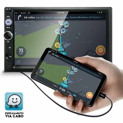 A Central Multimídia é o que falta para completar seu veículo. Player 2DIN com tela touch screen capacitiva widescreen de 7 polegadas. E o seu som automotivo de qualidade está garantido com este aparelho pois ele tem potência de 4x45 RMS por canal e várias opções de ajustes no equalizador. O Player ainda conta com entrada para câmera de ré. Ideal pra curtir suas músicas do jeito que preferir. Com o MP5 player automotivo da você também pode espelhar a tela do seu Android direto no visor, usando apenas um cabo USB. A Central Multimídia universal reproduz arquivos MP5, MP4, MP3, WMA, JPG e tem suporte compatível com cartão SD e uma entrada auxiliar frontal. Além disso o aparelho possui conexão bluetooth que compatível com reprodução de músicas e recebimento de chamadas telefônicas. A Central Multimídia universal é um acessório completo ideal pro seu carro. Conta com busca automática por estações e tem memória que guarda as estações de rádio FM. A Central Multimídia MP5 Universal além de proporcionar conforto e funcionalidade também agrega valor ao seu veículo, trazendo muita praticidade para quem dirige e quem o acompanha! ------------------------------------------------------------------------------------------------------ Frequência FM: 87,5 MHz - 108 MHz - Entradas: USB, cartão de memória SD / Auxiliar - Conexão Bluetooth - Suporta reprodução de vídeo HD (1080p) - Formatos de áudio suportado: MP1, MP2, MP3, WMA, WAV, FLAC, OGG, APE - Formatos de vídeo suportados: RM / RMVB / MP4 / MP5 / AVI / FLV / H263 / H264 / 3GP / SWF / ASF / MJPEG - Formatos de imagem suportados: JPEG / PNG / GIF etc. - Resposta de frequência: 20Hz a 20KHz - Relação sinal-ruído: 50dB - Alcance do rádio: 10.7MHz - Controle de som: ± 8 dB - Botões com iluminação de LED - Entrada para câmera de ré - Função relógio e mudo - Controle de graves e agudos - Dimensões aproximadas do produto (AxLxP): 10 x 17,2 x 6,5 cm Acompanha: MANUAL CONTROLE CABOS DE LIGAÇÃO SUPORTE DE FIXAÇÃO APARELHO MOLDURA DE ACABAMENTO 2 DIN CÂMERA DE RÉ OBS: PRODUTO NÃO TEM LEITORA DE CD. OESTESOM A MELHOR LOJA DE PRODUTOS AUTOMOTIVOS NA INTERNET!