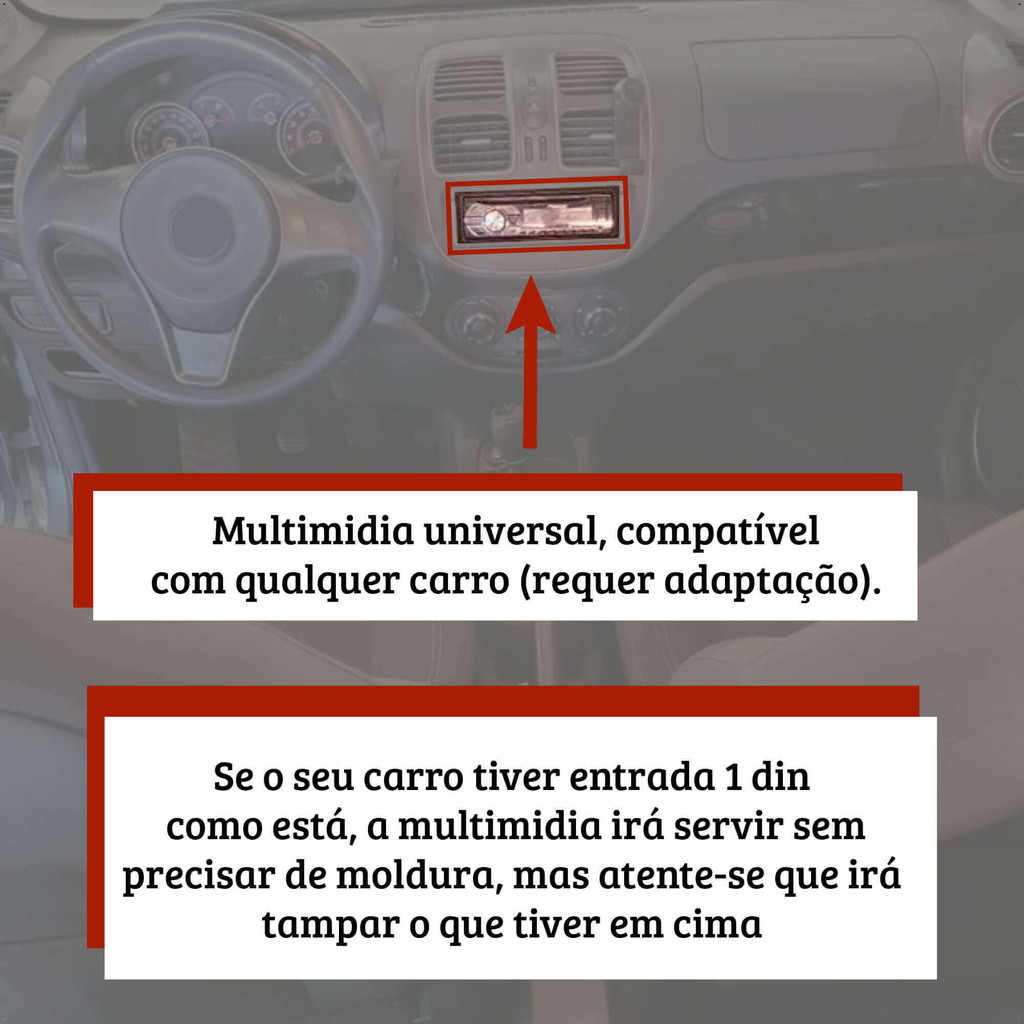 OBS. ESPELHA ATÉ IOS 16.1 e Android 12, VERSÕES ALÉM DESSA PRECISAM SER CONFIRMADAS. Tela de 7" Full Touch 1DIN A multimídia MP5 RS-401BR Plus foi desenvolvido para substituir auto rádios 1 DIN sem a necessidade de trocar a moldura, ela possui botões com 7 cores de iluminação e tela de 7" full touch com uma interface intuitiva e amigável. Com a multimidia RS-401BR Plus você poderá curtir suas mídias de audio ou vídeo através da entrada USB. Através da conexão Bluetooth você pode atender, ou efetuar, suas chamadas telefônicas e também reproduzir suas playlists de seu celular direto na RS-401BR Plus. Além disso, você também receberá a câmera de ré borboleta, que é simples e segura para realizar manobras com seu carro. Este acessório super simples e compacto, fornece a você a segurança necessária que você precisa. Câmera modelo borboleta, conta com resolução de 420 linhas de auxílio de estacionamento, conta com visão noturna para facilitar as manobras em ambientes com pouca luz, câmera resistente a água e possui imagem colorida. Espelhamento Você pode espelhar seu celular com sistema Android ou IOS* diretamente na tela da RS-401BR Plus através do cabo USB. Características da Multimídia: - Marca: Roadstar - Modelo: RS401BR MI *Imagens meramente ilustrativas* Especificações Técnicas da Multimídia: - Painel: 1 DIN - Tela: Full Touch 7 Polegadas Resistiva - Painel: Fixo com botões em 7 cores de iluminação (azul, azul claro, branco, amarelo, vermelho, roxo e verde) - Tela: Full Touch 7" Resistiva - Rádio: FM com memória para 18 estações FM - Conexões: Bluetooth - Entradas frontais: Auxiliar e 1 USB - Entradas traseiras: 1 Vídeo Auxiliar, 1 Câmera de Ré, 1 Auxiliar e 1 Microfone Externo - Saídas: 2 RCA (Áudio) e 2 RCA (Vídeo) - Tipo de Conector: ISO - Controle Remoto: SIM (Físico e por aplicativo para Android) - Comando de Volante: SIM (em alguns modelos de carros poderá ser necessário o uso de interface) - Potência: 4 Canais de 50 Watts RMS - Código de homologação Anatel: 173262215053 Conteúdo da Embalagem: - 1x Multimídia RS-401BR - 1x Controle Remoto - 1x Câmera de Ré Borboleta 12V 420 Linhas CR-130
