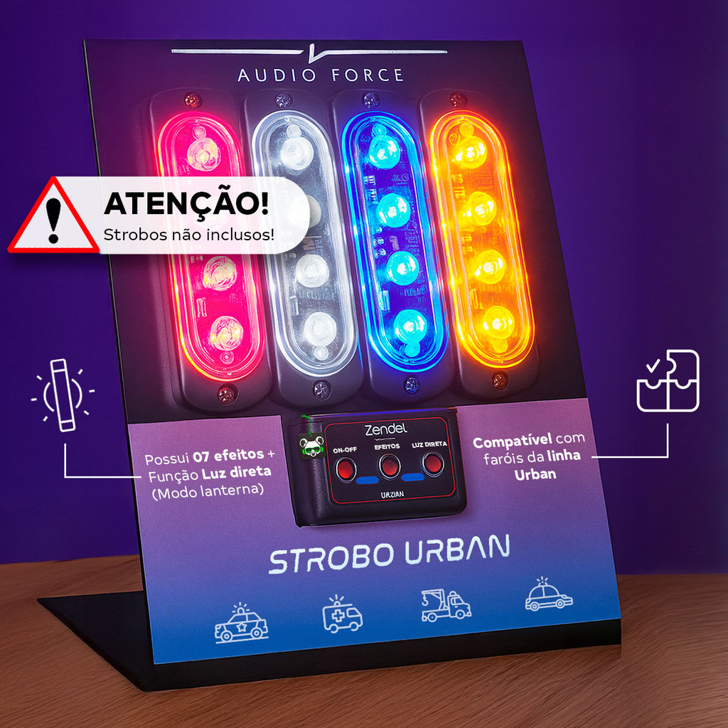 Central Strobo Urban 7 Efeitos 2 Saída Ambulancia Policia Giroflex Guincho 12/24v Zendel