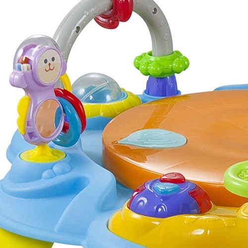 Centro Pedagógico PlayMove Peg-Pérego / Burigotto - Azul e Verde O Centro de Atividade Play Move possui assento giratório em 360°, possibilitando que a criança gire o corpo e alcance todos os brinquedos; É um modelo de Centro Educativo que possui brinquedos diversos localizados na base superior, com luzes, sons e movimentos divertidos, assento totalmente acolchoado, em tecido macio e de fácil limpeza; Esse Ginásio de atividades contém bandeja musical alimentada por duas pilhas AA (não inclusas), com várias músicas e plataforma removível que o transforma em mesa ou Pula Pula; Com altura regulável em três posições, para crianças entre 6 e 18 meses, esse é um brinquedo multi atividades seguro para o seu bebê, com certificação do INMETRO; **Atenção** Recomendamos que use somente com crianças que podem se sentar sem ajuda e pesem menos de 11kg.