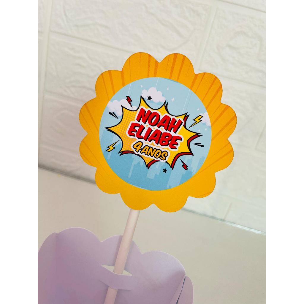 *ATENÇÃO* ENVIAR OS NOMES PELO CHAT NO PRAZO DE 24H, CASO CONTRÁRIO, ENVIAREMOS SEM PERSONALIZAÇÃO. LEIA ATENTAMENTE A DESCRIÇÃO ANTES DE EFETUAR A COMPRA Pegue e monte (recortados e com vinco para você finalizar a montagem, super prático e fácil, necessita de cola) Não são enviados montados (Acompanha cachepot, canudo e escalope) MEDIDAS: Altura do Cachepot: 9,3 Largura da parte Inferior: 5,5 cm Altura total do Cachepot com o canudo aproximadamente: 24 cm Acompanha canudo podendo ser COLORIDO OU BRANCO (sempre combinando com o tema). Material:Papel Matte 180g, (Fosco) Impressão de altissima qualidade. Após a compra é necessário informar pelo chat o NOME e a IDADE. ** Caso não seja enviado as informações mencionadas acima, o pedido será enviado SEM a personalização ** Não encontrou o tema que deseja? Nos envie uma mensagem que desenvolveremos ele pra Você! Qualquer dúvida estamos à disposição!