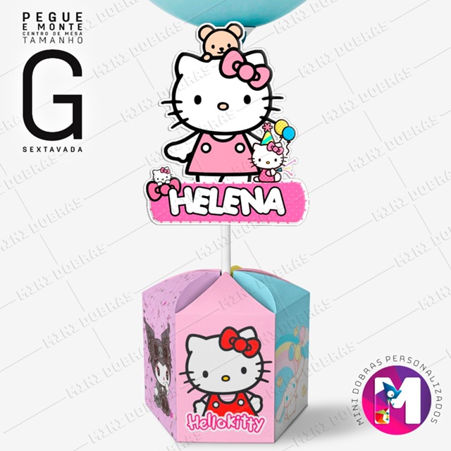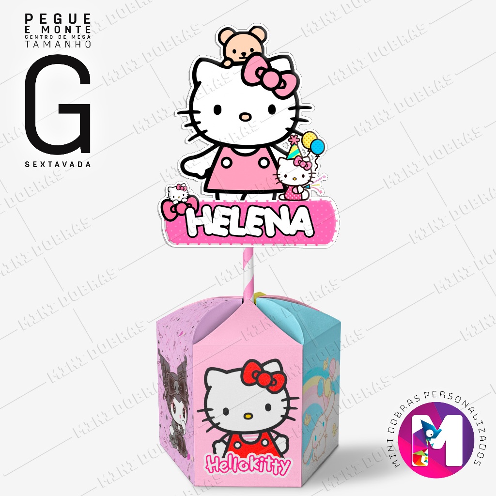 Centro de Mesa HELLO KITTY - Caixa Sextavada - Tamanho G - Personalizado (PEGUE E MONTE)