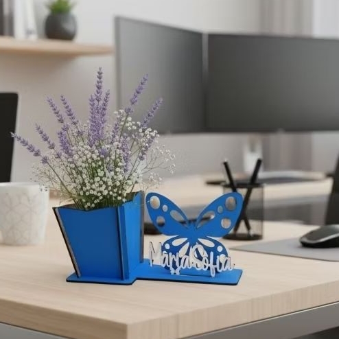 (CENTRO DE MESA) KIT 10 'CACHEPÔ COM BORBOLETA + NOME EM MDF🏷