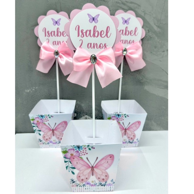 ✨ Centro de Mesa Personalizado ✨ Produzido em papel offset 240g, resistente e de ótima qualidade. 📌 Detalhes do produto: Modelo cachepô (vai colado e vincado, com fundo de encaixe) Acompanha laço delicado Possui 1 aplique decorativo Personalizamos apenas nome e idade (não alteramos a arte) 📌 Informações importantes: Caso deseje em outro tema, entre em contato pelo chat. Após a compra, é necessário enviar nome e idade em até 24h. Se não for informado dentro do prazo, o centro de mesa será enviado no tema padrão (borboleta).