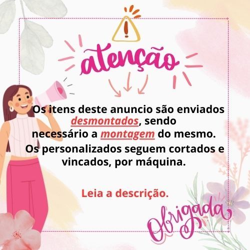 🎉 Centro de Mesa Personalizado – Kit Pegue e Monte Deixe sua festa ainda mais linda com nossos centros de mesa personalizados, criados especialmente para você! Produzidos em papel offset 180g de alta qualidade, com tema, nome e idade personalizados, são perfeitos para quem busca praticidade, beleza e exclusividade. ✨ APÓS REALIZAR A COMPRA, INFORME IMEDIATAMENTE OS DADOS PARA A PERSONALIZAÇÃO (TEMA, NOME E IDADE), POIS OS PEDIDOS QUE NÃO FOREM INFORMADOS APÓS A COMPRA SERÃO ENVIADOS SEM PERSONALIZAÇÃO. ✨ 💡 Detalhes do Produto: Produzido em papel offset 180g Cada centro de mesa inclui: base (cachepô), tag e canudo (NÃO ACOMPANHA LAÇO) Medidas: Base: 8,5 cm de altura x 12,5 cm de largura Tag: 13 x 13 cm Acompanha vídeo explicativo para montagem Enviados desmontados — formato pegue e monte, garantindo que cheguem perfeitos até você Opção com laço disponível — consulte valores através do chat Cores dos laços combinam com o tema escolhido 🚀 Diferenciais: Temas exclusivos e personalizados especialmente para sua festa Acabamento impecável e impressão de alta qualidade 🎀 Ideal para: Festas infantis, aniversários e eventos temáticos. Monte com facilidade e encante seus convidados com um toque personalizado cheio de charme!