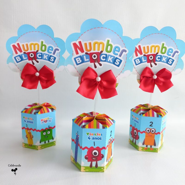 Centro de mesa Personalizados Numberblocks Enfeite de Mesa Aniversário Cachepo PEGUE E MONTE