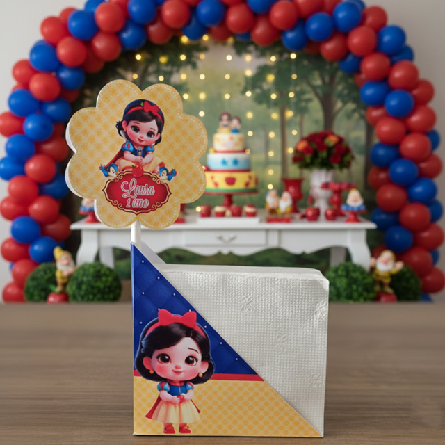 Centro de Mesa Porta Guardanapo Branca de Neve Cute Personalizado Enfeite Festa Aniversário Chá Infantil