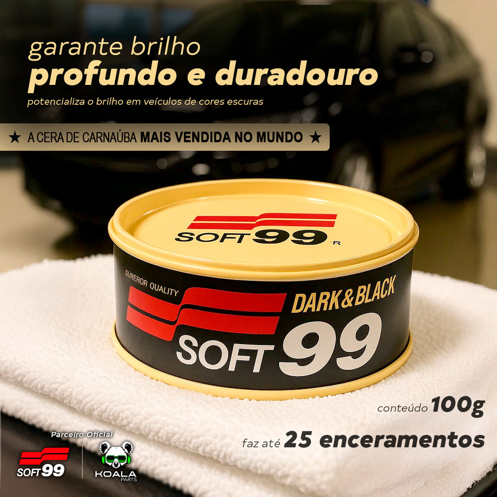 Quer uma cera de ótima qualidade e excelente custo benefício? Conheça a Cera de Carnaúba Dark & Black, da renomada marca japonesa Soft 99. A cera de carnaúba automotiva mais vendida do mundo. Suas propriedades e resultados são comprovados por profissionais e usuários em diversos países! - É do tipo pasta dura e tem ótimo rendimento. - A embalagem de 100 gramas faz até 25 enceramentos. - Potencializa o brilho em cores escuras - Pode ser aplicada em todas as cores de veículos. - Alto nível de brilho. Ela foi desenvolvida para destacar ainda mais o brilho de carros pretos e escuros, mas também pode ser aplicada em carros de cores claras. O resultado é um brilho do tipo molhado. A Dark & Black é uma cera de ótimo custo x benefício. De altíssimo rendimento, ela chega a fazer até 25 carros! De textura sólida, que facilita a aplicação, Dark & Black gera uma membrana de repelência que irá proteger seu veículo contra intempéries do tempo, dificultando que sujeiras impregnem no seu carro. Além disso, ela também garante proteção contra raios UVA e UVB. E fique tranquilo, pois caso, por descuido, alguma parte plástica ou emborrachada for encerada, a cera Dark & Black não as deixará esbranquiçada. Modo de uso: 1. Lave o carro antes de aplicar. 2. Com uma esponja, espalhe uma fina camada uniformemente sobre a superfície do veículo. 3. Aguarde secar de 3 a 5 minutos e faça o lustro com uma toalha de microfibra limpa e seca. Partiu Cera de Carnaúba Dark & Black! Enviamos bem embalado, super rápido e com garantia de originalidade. Garanta o seu e confira os outros produtos da nossa Loja Koala Parts Especificação técnica: Nome: Cera de Carnaúba Dark & Black Marca: Soft99 Uso: Para proteção da pintura do veículo Durabilidade: Até 2 meses Rendimento: Até 25 aplicações Compatibilidade: Potencializa as cores escuras, mas pode ser usada em todas as cores de veículos. Tipo: Pasta Dura Conteúdo: 100g Conteúdo da embalagem: 01. Cera Automotiva de Carnaúba Dark & Black Soft99