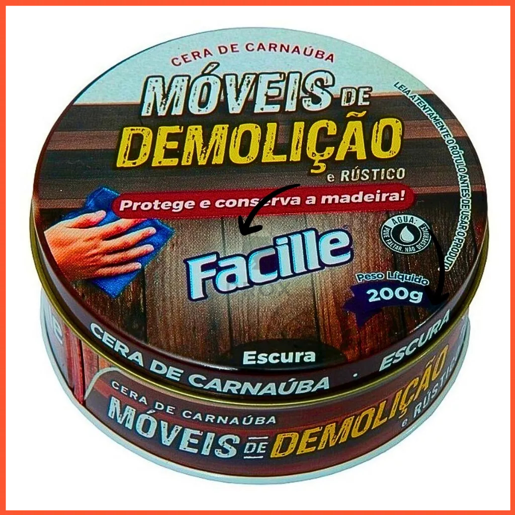 Cera de Carnaúba para Móveis de Demolição e Rústico 200g O produto é composto por matérias primas naturais, tendo como base a cera de carnaúba que cria uma camada protetora conservando o aspecto natural da madeira por mais tempo. Fácil aplicação e efeito prolongado contra manchas de líquidos, chuvas, excesso de exposição ao sol e risco em geral.