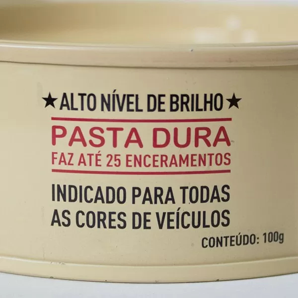 Cera de com base de carnaúba indicada para todas as cores de veículos e com alto rendimento em apenas 100g para carros claros e carros escuros. Características: Cera de carnaúba natural Para todas as cores de veículos Brilho profundo com alto rendimento Garante brilho duradouro Forma uma camada de repelência a água e sujeira Contém 100g que pode fazer até 25 enceramentos Recomendações: Não aplique em peças não pintadas, plásticos, borrachas, vidros e couros Não Ingerir Não aplicar em lataria quente ou sob luz solar direta Avisos: Mantenha longe do alcance de crianças e animais. Rendimento: 25 enceramentos Textura: Pasta Dura Fabricante: Soft99 Japan Nome: Cera de Carnaúba All Colors Peso: 100g Nível de Brilho: 8 Durabilidade: 60 dias Nível de Proteção: 8 Nível de Repelência: 9 Como usar o produto 1 - Lave o veículo antes de aplicar. 2 - Com uma esponja, espalhe uma fina camada uniformemente sobre a superfície. 3 - Aguarde secar de 3 a 5 minutos e faça a lustro com uma tolha microfibra limpa e seca.