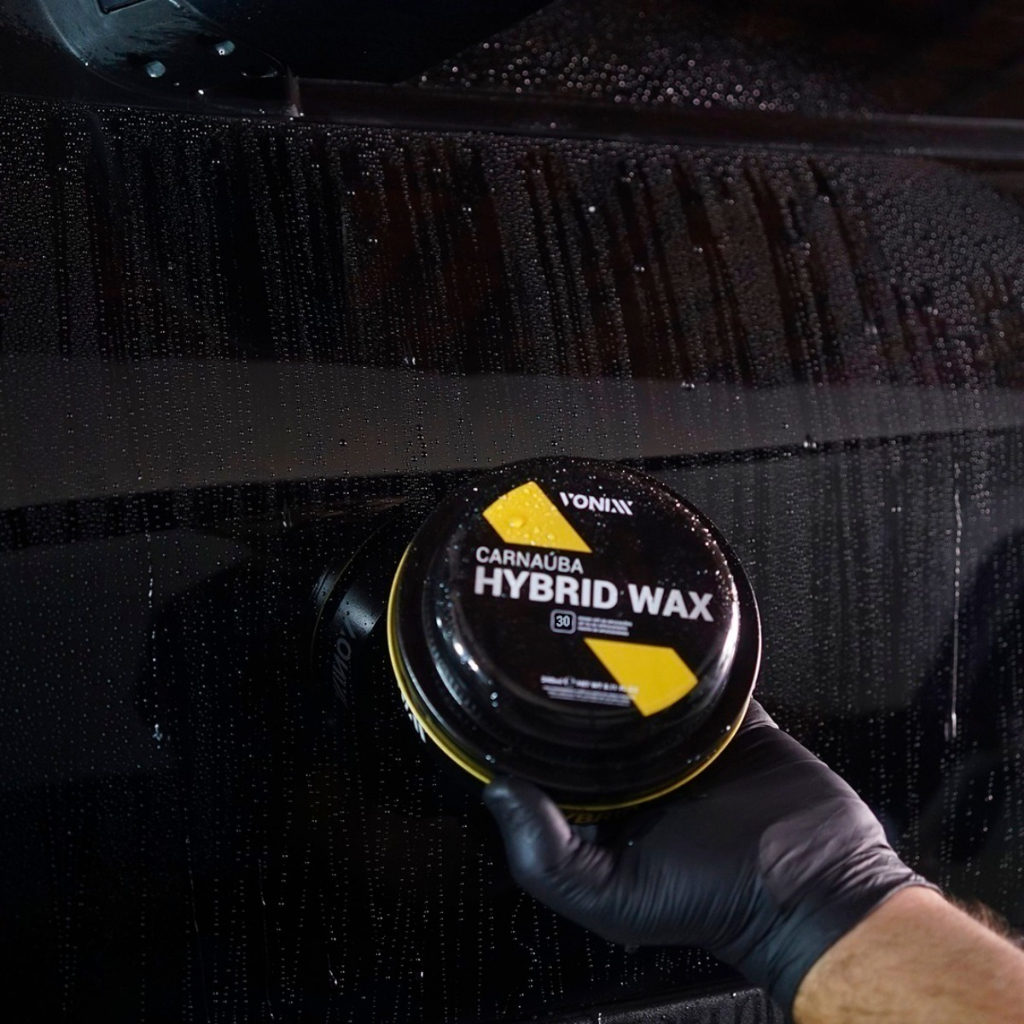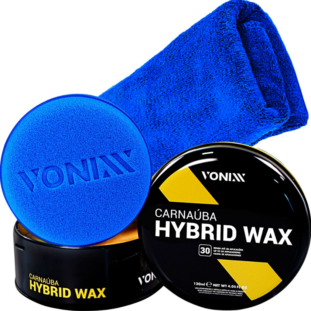 1- CARNAÚBA HYBRID WAX 120ML VONIXX 1- APLICADOR ESPUMA (INCLUSO) 1- PANO MICROFIBRA 40x40 JS -------------------------------------------------------------------------------------- DESCRIÇÃO: Carnaúba Hybrid Wax é uma cera desenvolvida com a mais pura carnaúba cearense e polímeros de última geração, que protegem e dão brilho por um longo período. MODO DE USAR: - Aplicar o produto em pequena quantidade na pintura limpa e seca. - Utilizar o aplicador incluso na embalagem e realizar a aplicação com movimentos uniformes. - Aguardar entre 5 e 10 minutos e remover o produto utilizando toalha de microfibra até obter o brilho desejado.