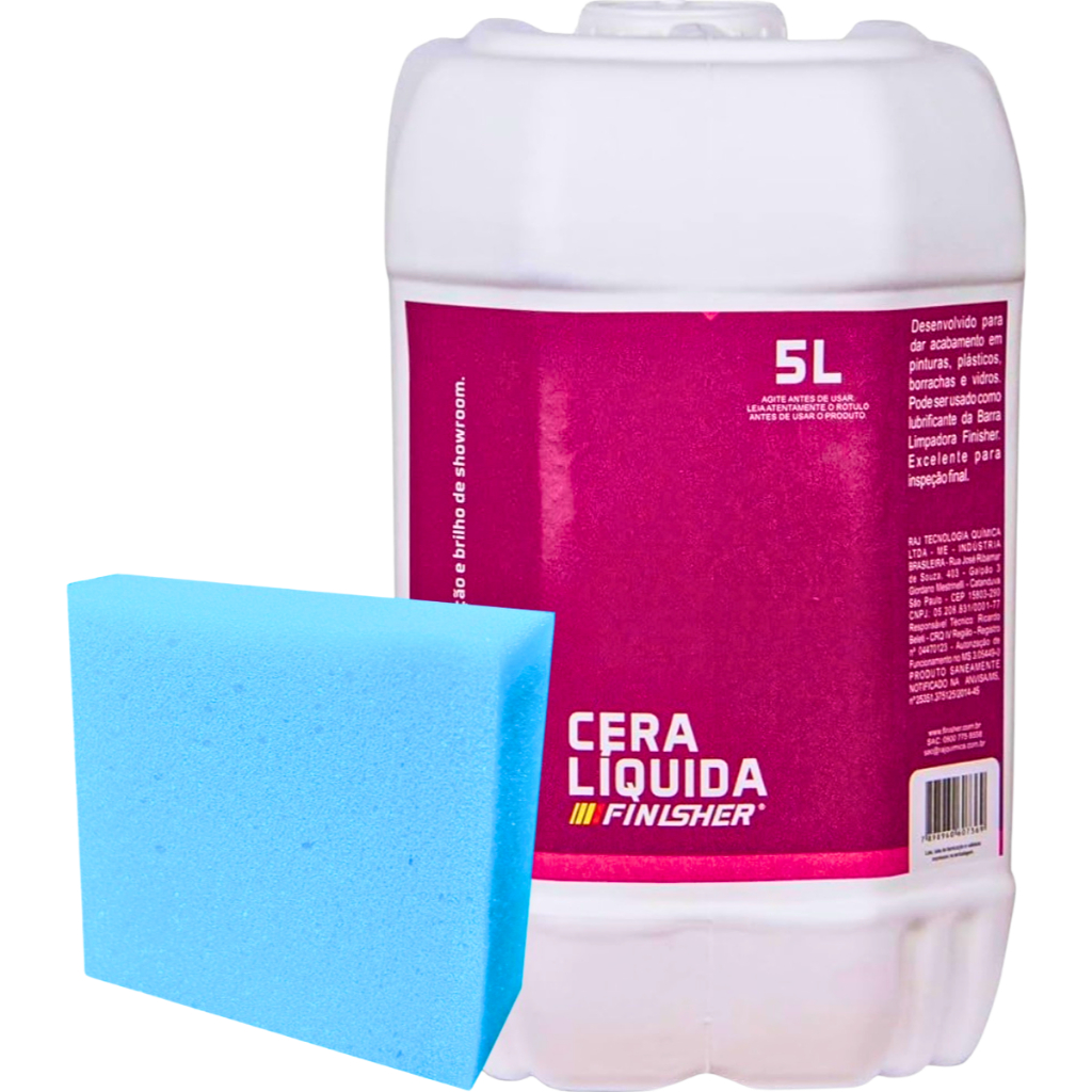 CERA LÍQUIDA SPRAY DE CARNAÚBA FINISHER 700ML Produto desenvolvido para dar brilho em automóveis com pintura em bom estado de conservação. Fácil aplicação. Indicado para enceramentos rápidos, acabamentos e inspeção final. Pode também ser utilizado como lubrificante de Clay Bar com enceramento em uma única etapa. DILUIÇÃO: Pronto Uso. MODO DE USO: 1. Antes de iniciar a aplicação deste produto, certifique-se que a área aplicada está limpa, seca, fria e sob proteção solar. 2. Em caso de pintura áspera, utilize em conjunto a Barra Limpadora Finisher. 3. Usar aproximadamente 40ml por carro. Aplique por partes, uma pequena quantidade do produto. 4. Com uma flanela limpa de microfibra espalhe uniformemente até que comece a secar, vire o pano para um lado seco e dê o lustre. 5. Repita a operação até que finalize toda a superfície, criando assim um brilho extremo.