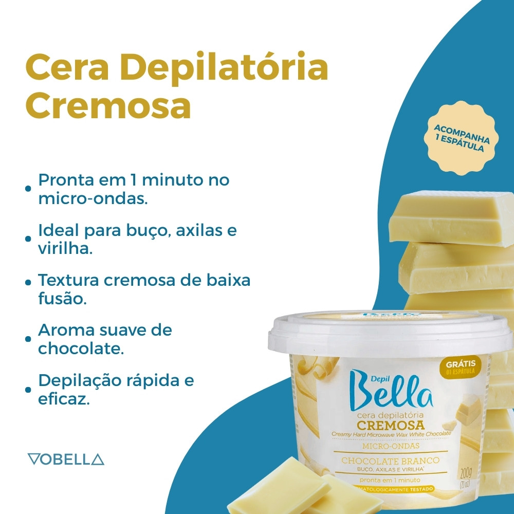Cera Depilatória Micro-ondas Chocolate Branco Buço Depil Bella 200g Depilação prática, eficaz e com um aroma delicioso de chocolate branco! A Cera Depilatória Micro-ondas Chocolate Branco Buço Depil Bella 200g foi desenvolvida para remover os pelos com suavidade, dilatando os poros e garantindo uma pele lisinha e macia. Por que comprar a Cera Depilatória Micro-ondas Chocolate Branco Depil Bella? Com fórmula dermatologicamente testada e não testada em animais, essa cera combina praticidade com resultados eficientes. É fácil de aquecer no micro-ondas, tem ação suavizante e ainda deixa um aroma irresistível durante o uso. Sobre o produto: -Cera depilatória micro-ondas Chocolate Branco 200g. -Marca: Depil Bella. -Dermatologicamente testada. -Não testada em animais. -Com aroma de chocolate branco. -Dilata os poros, facilitando a remoção dos pelos. -Ação suavizante. -Uso corporal e facial. Indicado para: -Todos os tipos de pele e pelos. -Quem busca depilação prática e eficiente. -Uso em regiões corporais e faciais. Modo de uso: -Retire a tampa do pote. -Aqueça no micro-ondas em potência alta por 1 minuto. -Aguarde alguns segundos e mexa com cuidado antes de aplicar. Precauções: -Uso externo. -Siga corretamente as instruções de aquecimento para evitar queimaduras. -Não aplicar sobre a pele irritada ou lesionada. -Manter fora do alcance de crianças. Com fórmula prática, aroma agradável e resultados eficazes, a Cera Depilatória Micro-ondas Chocolate Branco Buço Depil Bella 200g é a escolha ideal para uma depilação suave e com toque especial. Garanta já a sua! Surgiu alguma dúvida? Entre em contato com a gente! Boas Compras :)