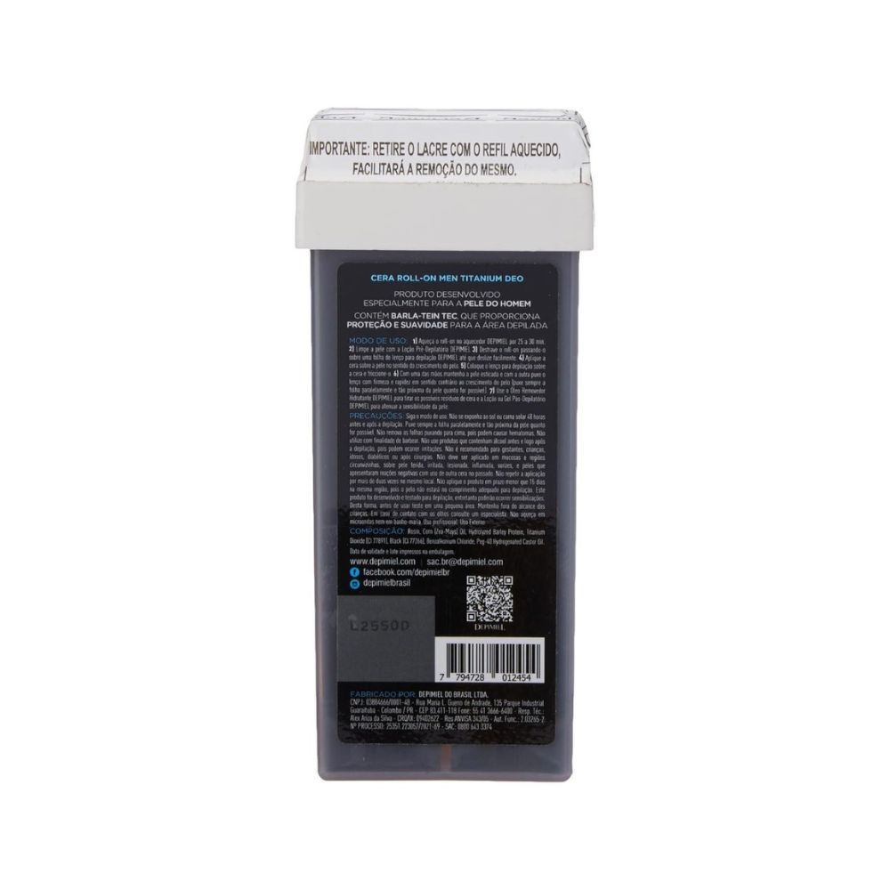REFIL DEP ROLL ON DEPIMIEL MEN POWERFULL é Cera de refil de depilação eficiente e 100% descartável! Cera super prática, rápida e econômica sua possui textura super fina e proporciona uma depilação eficiente e não agride a pele. modo de uso: 1. Aqueça a Cera Refil Roll On Depimiel Maracujá no aquecedor por 25 a 30 min. 2. Limpe a pele com a Loção Pré-Depilatória. 3. Destrave o Roll-on passando-o sobre uma folha de lenço para depilação até que deslize facilmente. 4. Aplique a cera sobre a pele no sentido do crescimento do pelo. 5. Coloque o lenço para depilação sobre a cera e friccione-o. 6. Com uma das mãos mantenha a pele esticada e com a outra puxe o lenço com firmeza e rapidez em sentido contrário ao crescimento do pelo (Puxe sempre a folha paralelamente e tão próxima da pele quanto for possível). #html-body [data-pb-style="646BA6477B546"]{justify-content: Flex-start; display: Flex; flex-direction: Column; background-position: Left top; background-size: Cover; background-repeat: No-repeat; background-attachment: Scroll; border-style: None; border-width: 1px; border-radius: 0px; margin: 0px 0px 10px; padding: 10px;}#html-body [data-pb-style="646BA6477B55A"]{border-style: None; border-width: 1px; border-radius: 0px; margin: 0px; padding: 0px;}