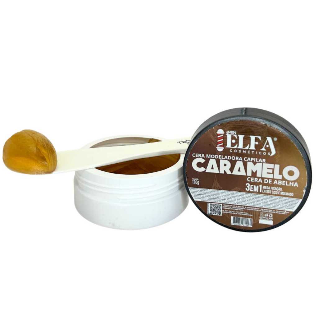 Cera Modeladora Elfa Caramelito – Brilho Molhado & Alta Fixação Estilo, brilho e fixação duradoura para seus penteados A Cera Modeladora Elfa Caramelito foi desenvolvida para todos os tipos de cabelo, garantindo alta fixação e efeito molhado que realça o brilho natural dos fios. Ideal para criar penteados modernos e versáteis, mantém o cabelo alinhado por mais tempo sem deixar oleoso e é facilmente removida no enxágue. Com fragrância marcante e fórmula que ajuda a proteger contra o calor de secadores e chapinhas, é perfeita para uso diário, proporcionando estilo, praticidade e cuidado ao mesmo tempo. Benefícios Alta fixação: penteados firmes e duradouros Efeito molhado: brilho intenso e acabamento sofisticado Proteção térmica: ajuda a proteger os fios do calor de secadores e chapinhas Fácil remoção: sai facilmente com shampoo, sem resíduos Versátil: indicada para todos os tipos, comprimentos e texturas de cabelo Uso diário: modela, finaliza e mantém os fios sempre alinhados Modo de Uso Aplique uma pequena quantidade da cera nas mãos. Espalhe uniformemente nos cabelos secos ou úmidos. Modele os fios conforme o estilo desejado.